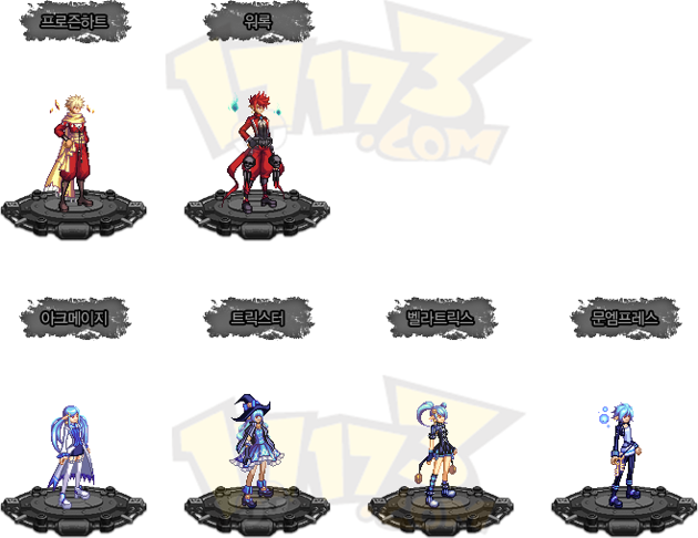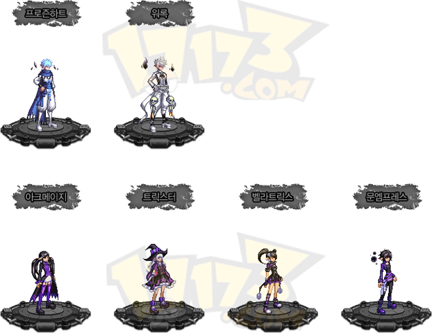 (依次为:冰结师、元素爆破师;元素师、魔道学者、战斗法师、召唤师)