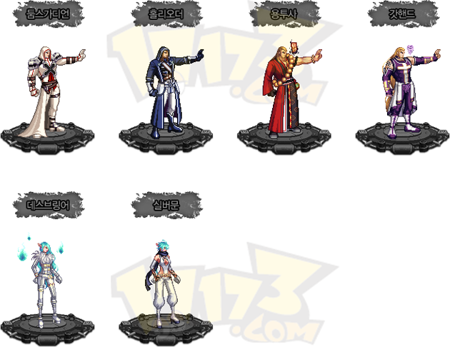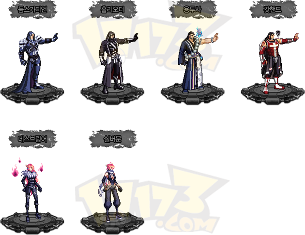 (依次为:复仇者、圣骑士、驱魔师、蓝拳圣使;死灵术士、刺客)