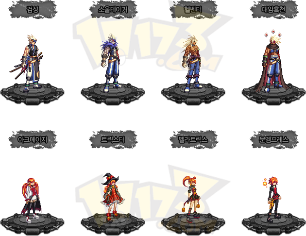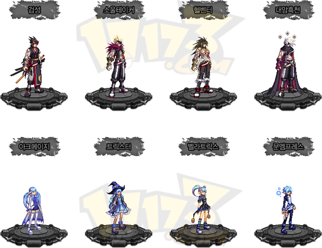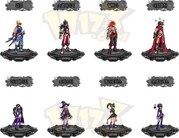 (依次为:剑魂、鬼泣、狂战士、阿修罗;剑宗、剑魔)