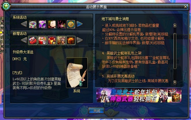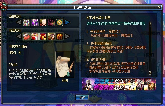 DNF体验服更新爆料 新职业黑暗武士与活动