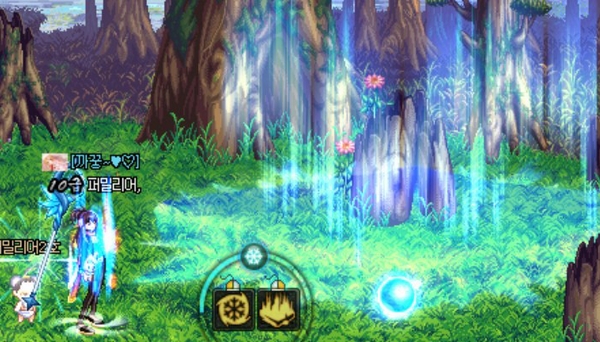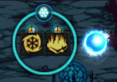 -按E键激活冰霜系基本技能,并且鼠标图标会变成冰球,按左键是释放冰霜之石、按右键是释放冰霜之板,而蓝色环形条代表冰系能量值