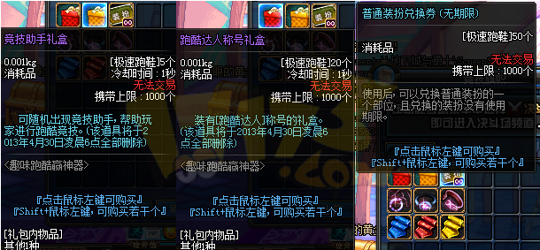 点击赛丽亚旁边的旗帜可以打开跑酷商店,出售各种礼盒,以及神器首饰与神器首饰的升级设计图。