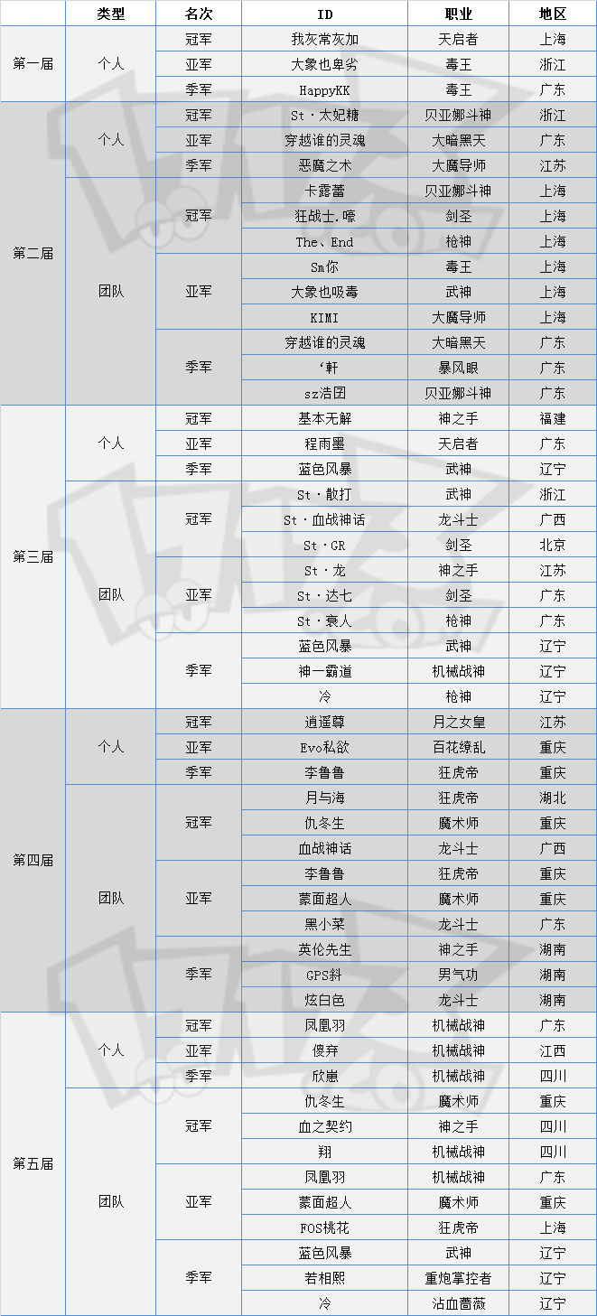 随着DNF精英赛第一轮的结束,第六届全国格斗大赛已经渐渐进入高潮,往年常拿季军的东北队这次终于扬眉吐气获得双冠,在此小编就来盘点一下历届格斗大赛的荣誉情况。