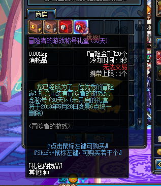 DNF冒险者的游戏活动奖励分为礼盒和粉装备,其中礼盒为:(冒险金币来源下文详细说明)
