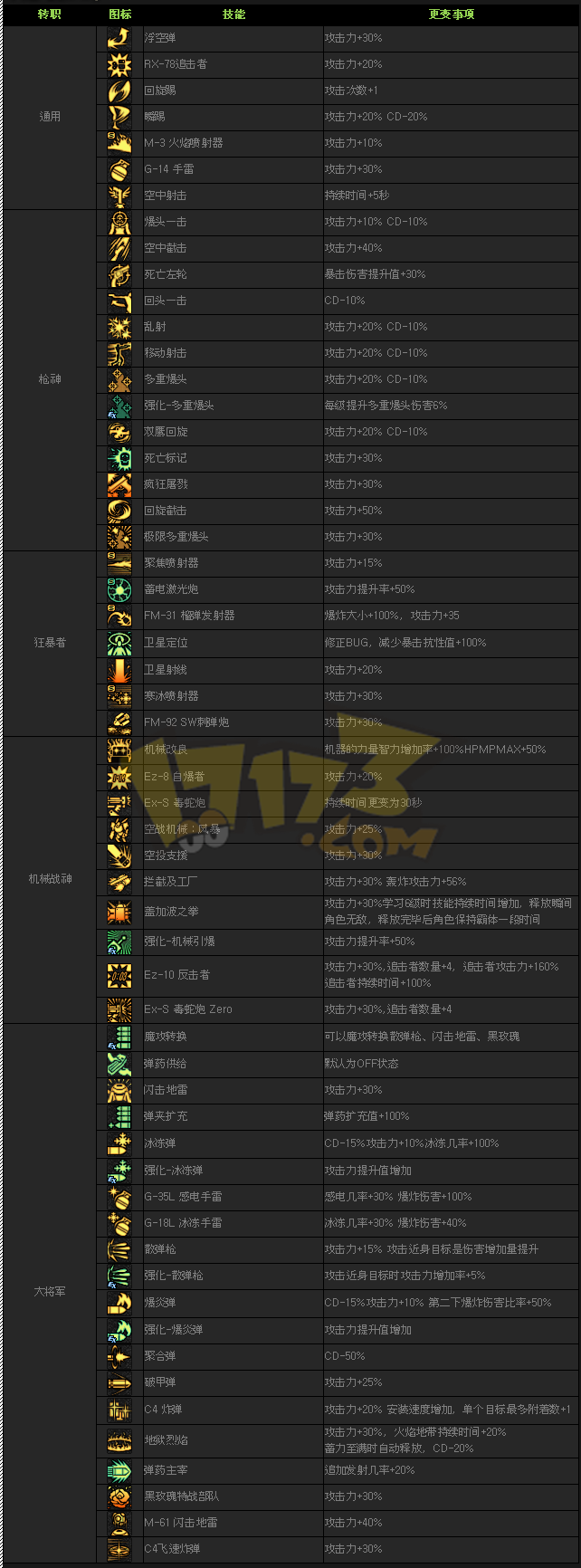 至于弹药,这次改版让魔法弹药成为了弹药主流加点,主力输出技能爆炎弹和冰冻弹的攻击力加强,CD减少。TP强化属性弹技能的伤害值提升让弹药重新回归爆炎弹一波秒的状态。