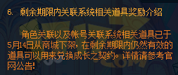 角色关联以及账号关联系统相关道具已于5.14从商场下架,在剩余期限内容仍然有效道具可以用来兑换成长之契约。