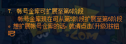 账号金库想在可从第五阶段扩展至第六阶段。想扩展账号仓库的话,就请点击升级按钮。