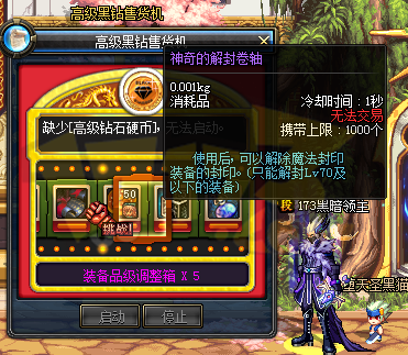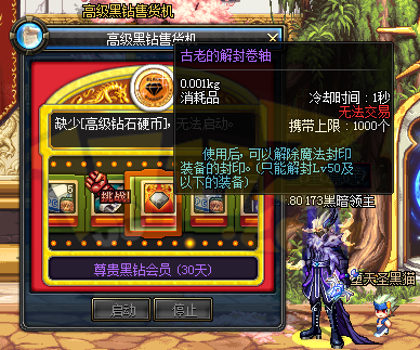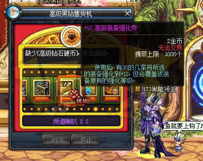 在鲁夫特悬空海港和嗉南地区设置高级黑钻售货机。在该地区及以上的地下城挑战时,将会随机获得高级钻石硬币。只有黑钻用户才能使用高级黑钻售货机。