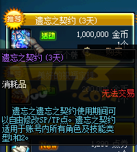 遗忘之契约商场已上架,仅售100W购买后3天内可以任意修改技能!还等什么!