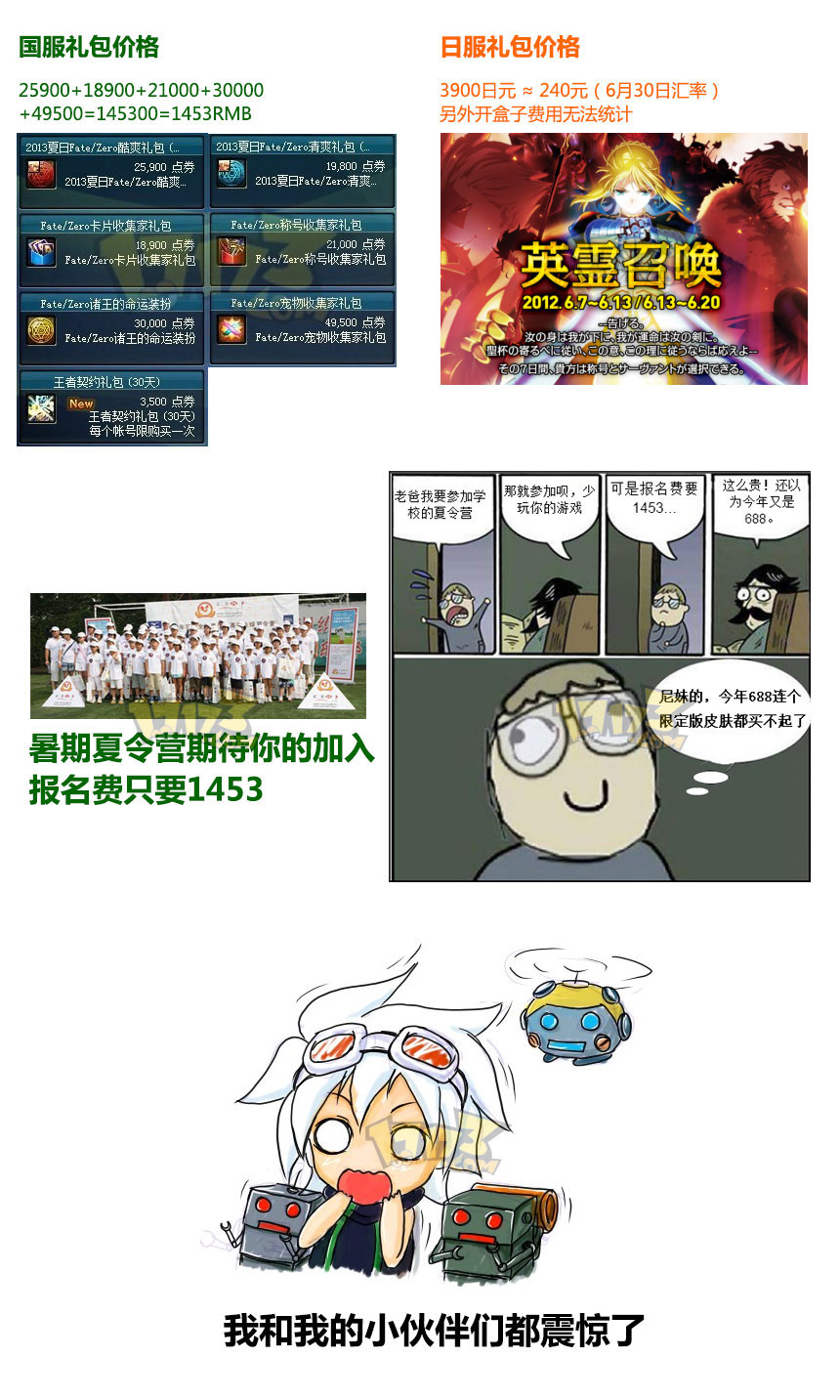 不过,国服的夏日套(FZ套)却不如想象中的那么美好,各种捆绑销售和强制打包贩卖的做法也引起了很多玩家的不满。接下来就让我们来看看一位热心玩家ybw做的对比吧!