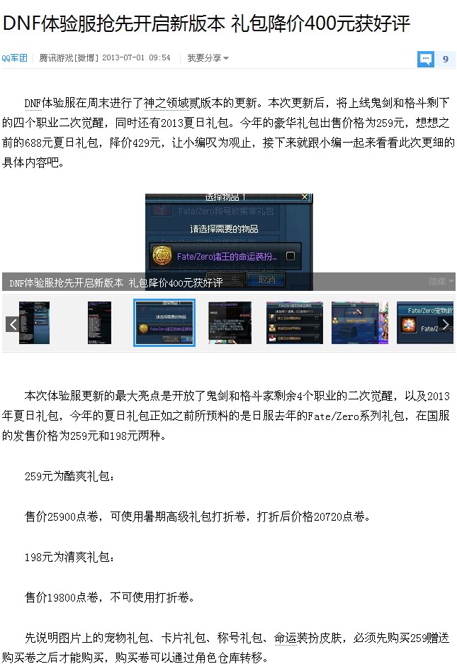 DNF体验服抢先开启新版 礼包降价400元获好评