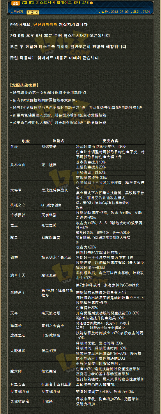 > 1次觉醒大暴走 韩服9号体验服公告完整版