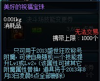 为了给您带来更好的游戏体验,“美好的祝福宝珠”将重新上架出售。出售时间:2013年7月16日更新维护后至2013年8月13日更新维护前。