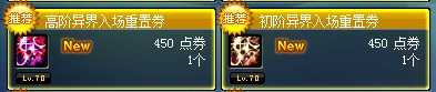 2013年7月16日更新维护后,商城将长期出售“异界入场重置券”。