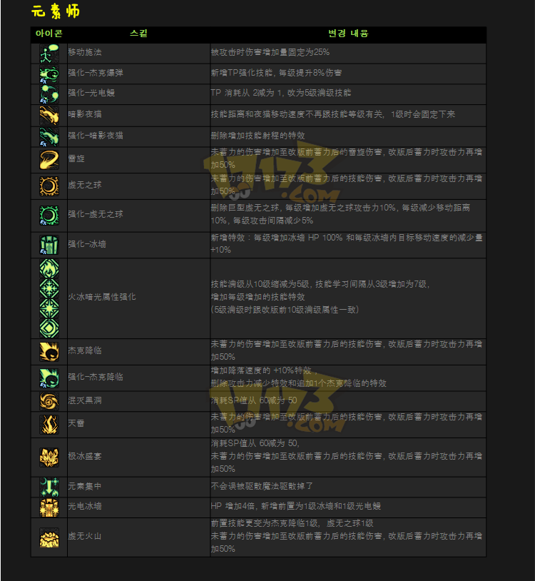 经过这次第三次平衡性改版,元素的伤害技能得到不小的增强(一般技能伤害等同于改版前蓄力后的伤害,改版后蓄力伤害在这个伤害上再+50%),加上第1次主动觉醒不再需要SP,且陨星幻灭技能现在全程保持无敌状态。使得元素的输出能力质量的飞跃。当然,做事十分高调的韩服元素师们也开始蠢蠢欲动,现在已经是大肆发布视频来炫耀我的伤害多么多么的IMBA...如同当年70版本一样。炫耀过头就是挨刀子,HF元素师们就是不明白。真是好了伤疤忘了疼。