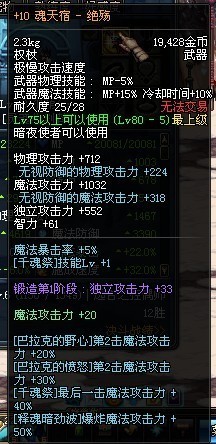 点评:高达1000的魔攻基础与大巴系所有技能加成,是死灵玩家的最佳武器之一!来自华南区的第一死灵草壁桜鼎力推荐^_^!出处:LV78-85地下城深渊出现。