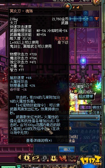 最高级装备:80SS巨剑-天魔斩;80SS太刀-冥炎刀-魂殇;各系80粉