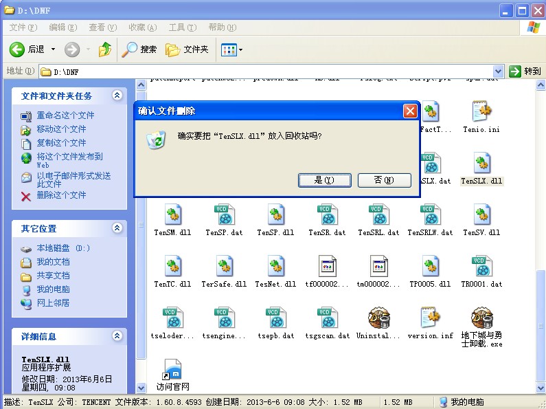 进入DNF文件夹下,删除TenSLX.dll文件,然后重新打开DNF即可。这时,游戏会自动更新出这个文件,在进行了1MB多大小的更新后,即可进入游戏。