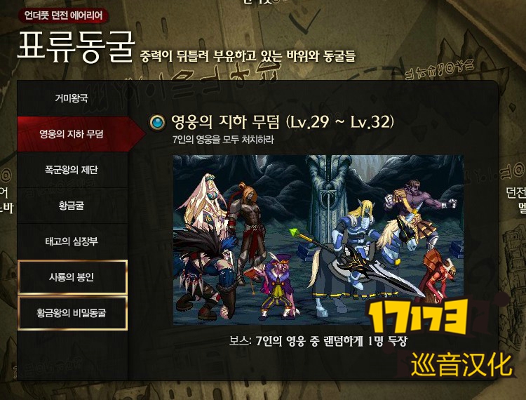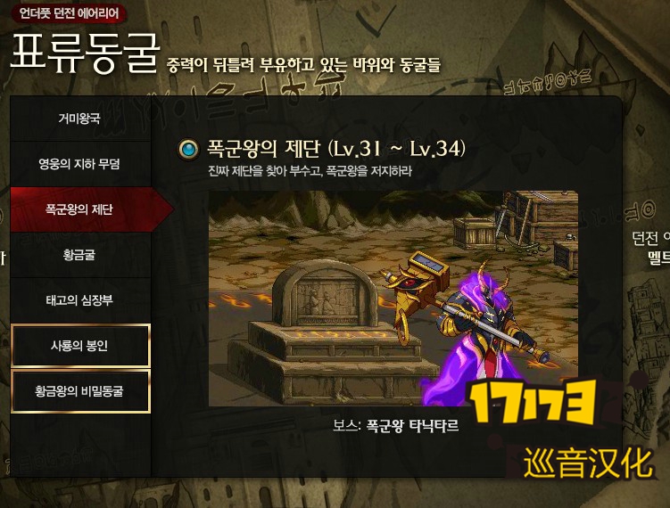 暗黑城附近的地下城---漂流洞穴的各地图介绍