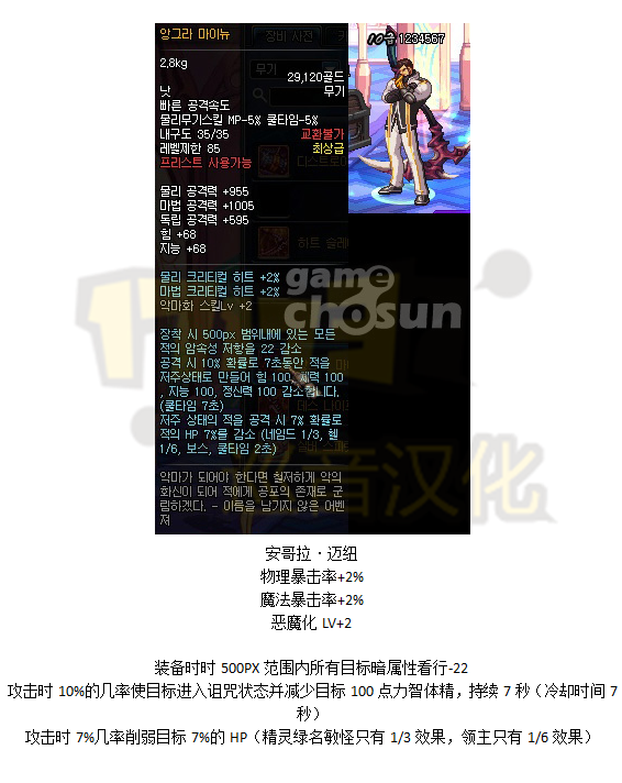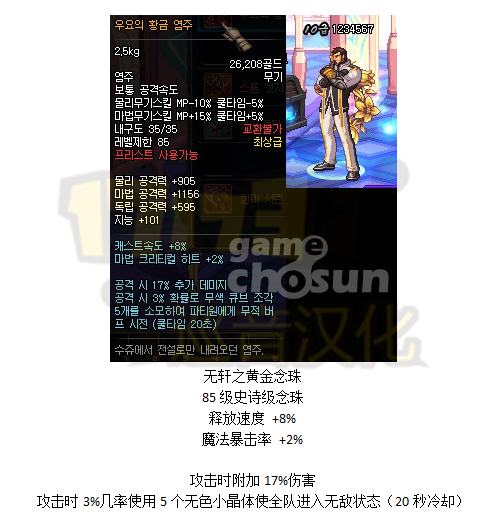 > 韩服体验服新出的85史诗75史诗武器属性一览
