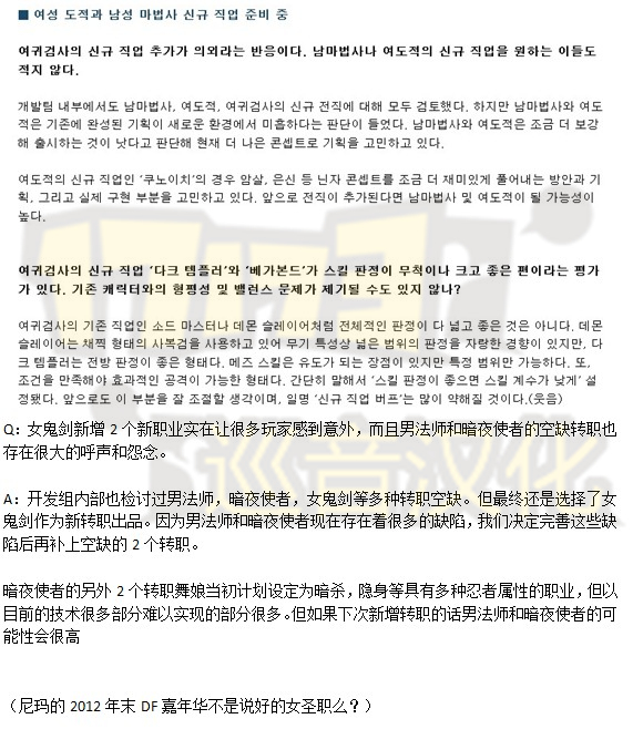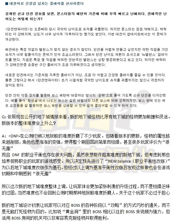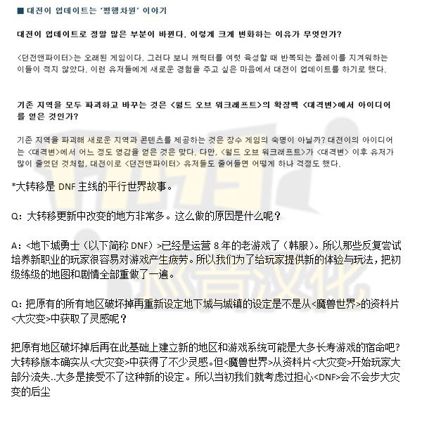 对于韩服DNF史上最大更新DNF大转移版本可能大家一头雾水,所以我们有幸采访了韩服DNF开发组的闵基洪组长和在线PM组尹明振组长,深度了解下这次9月12日即将到来的DNF大转移版本的设计初衷和以后的更新方向。
