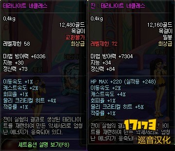 物品等级变为72级,相应魔法防御力,智力精神等基础属性增加