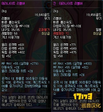 武器变为72级,相应的物理、魔法攻击力力量、智力等基础属性增加