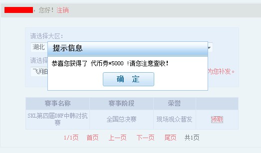 你们好!DNF中韩对抗赛(SKL)已经结束一段时间了。近期我们仍然接到了玩家们的投诉称奖励仍未发放到位。特此向大家介绍领取奖励的步骤:
