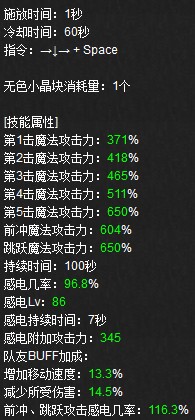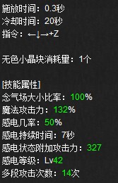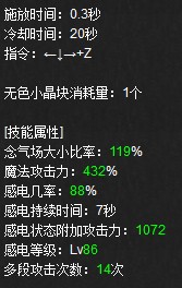 SP60,CD30秒。伤害分为穿刺(定怪)以及爆炸2次伤害,并且100%感电(无法感电除外)
