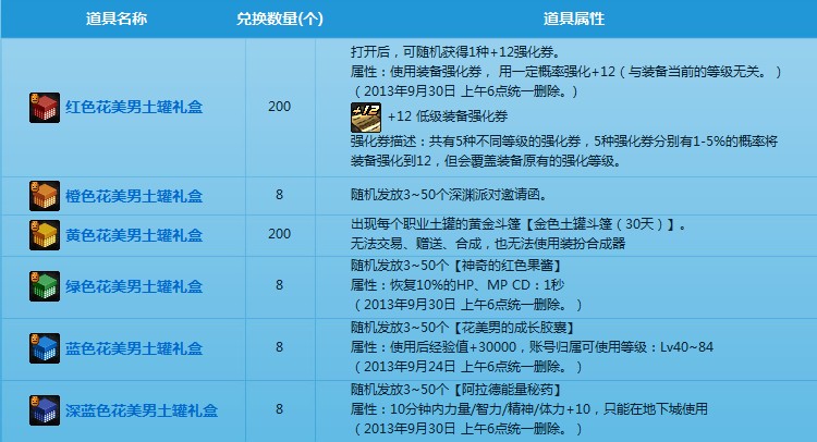 3、【花美男土罐礼盒】、【花美男的痕迹】会在2013年9月24日上午6点统一删除。