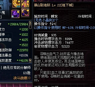 来做一个对比,这样大家也能看到更为明确的数据,首先是笔者无异界装,1522独力攻击情况下22级大蹦的技能介绍: