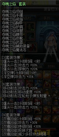 夺魄六/九:着重提升爆头、移动、双鹰的伤害,虽然是九件套,但是可以在释放双鹰前通过换装获得九件套的效果,平时六件套依旧可以合理搭配其他装备进一步提升输出