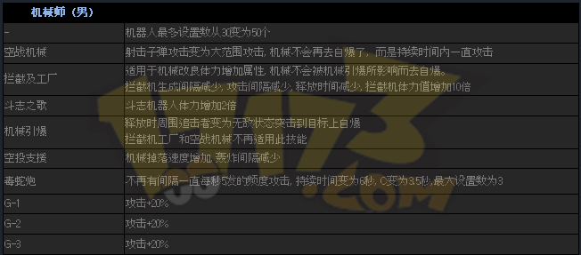 男机械来说整体R系都有不少的BUFF,而且还增加了男机械多年疲软的G系技能,表现算是中规中矩吧。但改版后男机械的几个主力输出技能变动较大,毒蛇炮变为短CD小招,加上机械引爆的改良...随之男机械的打发也会跟着改变。