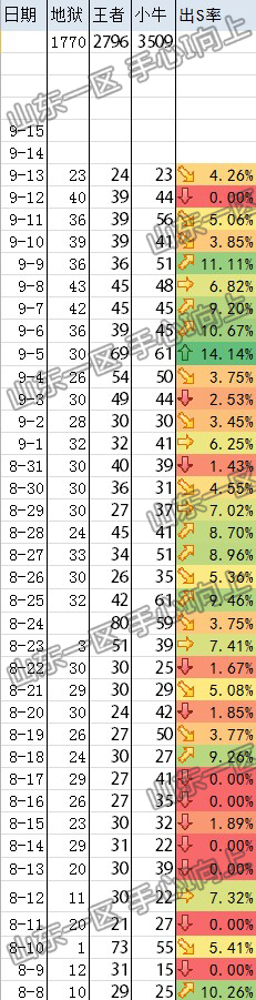 PS:后面的几率是当天掉落SS的几率.