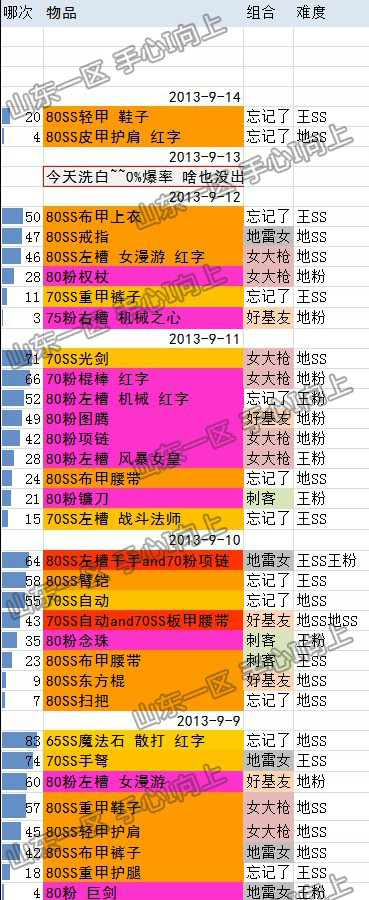 作为山东一区的小战萝.记得在60年代时,这个游戏就有了深渊模式这个概念,在那个药水都吃不上的日子.深渊模式只有天空之城的,门票还是不能交易的,史诗装备更只是听说过没见过...- - 为了刷门票去打悬空城(因为2只BOSS能掉2张门票) 然后再去换红薯打深渊.当时的深渊怪只有一只火恶魔而已. 记得出过最好的是1把裂创心灵之刃.好开心 卖了240块RMB..在之后的版本游戏更新 开了所有等级的深渊..歌兰蒂斯那可以换SS.旗子啊 无影剑 什么的好东西.. 为了这些神奇的装备.我也正式的加入了刷深渊的行列...就在这个时期网上也渐渐出现了类似《最新卡非常困难の方法》,《XX条深渊技巧-教你出货》之类的帖子..但是这些经验与方法都是很难去验证是否有效的. 那么到底什么图容易出货!到底该打地狱还是王者!到底各种深渊组合该留哪只怪! 今天我们来揭开谜底,接触真相!------------------------