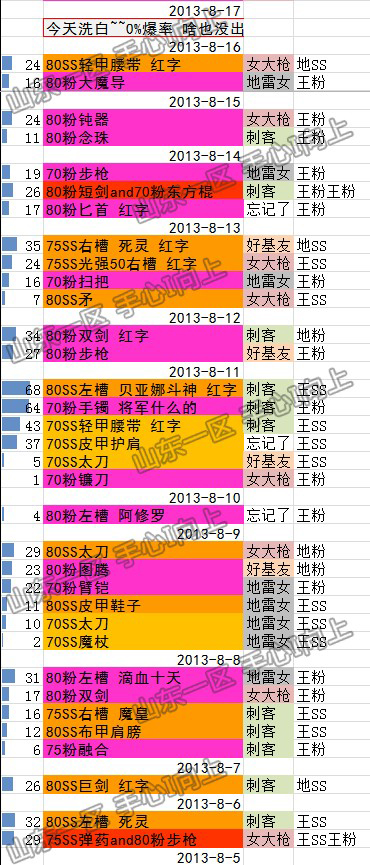 ps:以下出货的含义为出SS或粉. 并不只是表示出SS的几率或者出粉的几率.