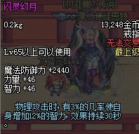 推荐新手使用,如果是已有高等级力法号,建议用闪灵幻月,因为拉罗换装效果消失,闪灵换装后智力BUFF还在
