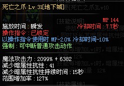 增加死亡之爪的暗属性抗性减少值和持续时间。每提升1级,增加持续时间10%,暗属性抗性减少10%(并非数据上所显示的12%)