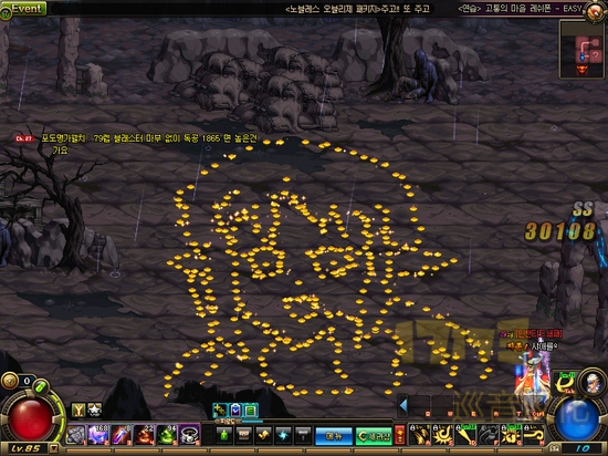 一个韩服玩家午夜蛋疼之作,从0:33分开始到2:53分花了2小时20分钟,用531枚金币摆出了一个LOLI头像,不得不佩服其毅力...而且这个玩家还一步步截图演示教会大家如何用金币摆出一个好看的LOLI头像,那我们来见证一下笔者的毅力吧!首先试着摆出弧线,适应下金币掉落的间距