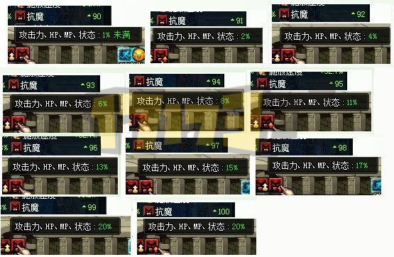 众所周知,刷异界都需要抗魔!我曾经做个测试:异界K级90-100抗魔加成一览表