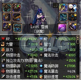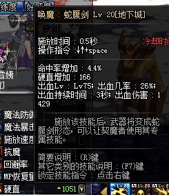 之后是穿上蝮蛇3的面板(相差4点物攻)