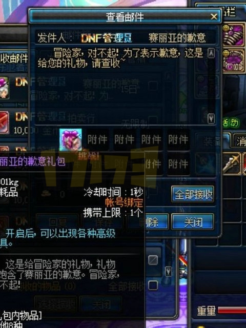玩家在维护后第一次登录,第一个选择的角色进入游戏时,将会收到补偿邮件。