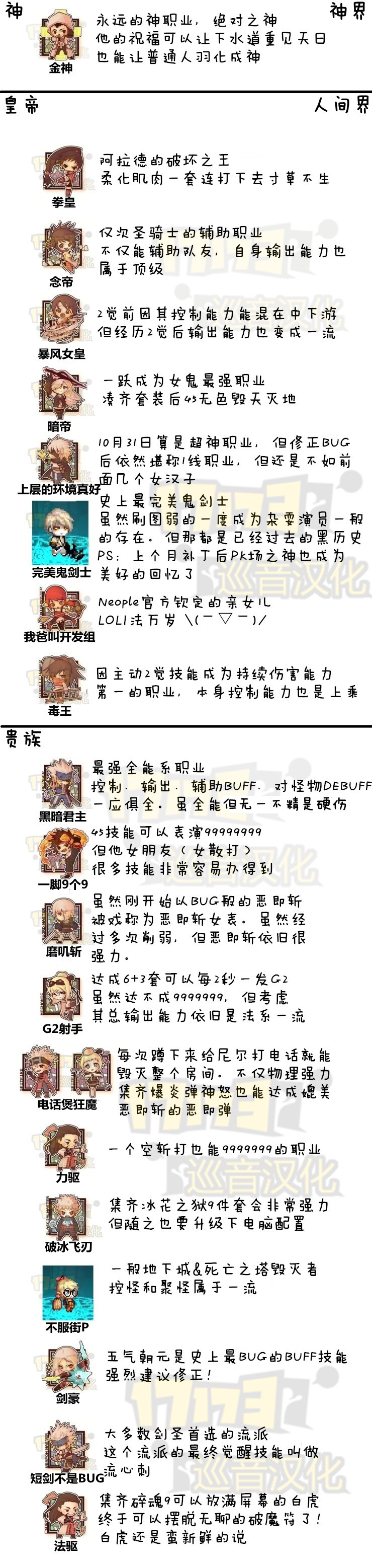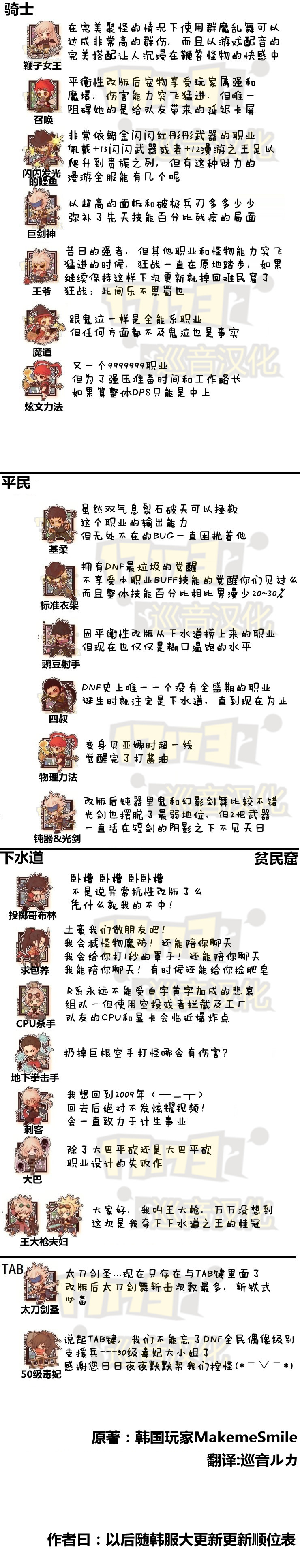 平衡性改版后韩服各职业刷图能力顺位排行榜: