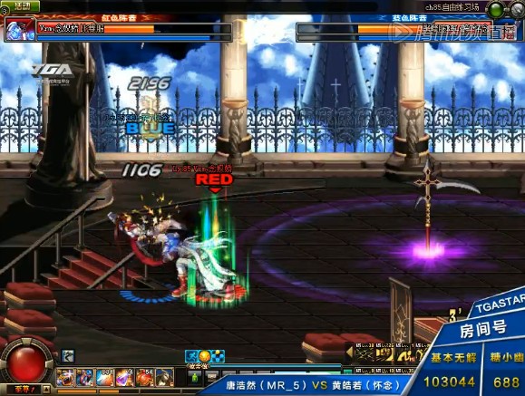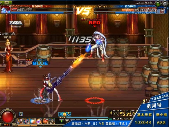 2013TGA大奖赛DNF个人赛的第一场比赛在女大枪怀念与蓝拳Mr5之间展开。从双方的职业来看,蓝拳天生在机动性上虽然有一定的优势,但是这个版本的女大枪机动性也不差,加上简单的连招就能打出超高的伤害,蓝拳的形势并不乐观。