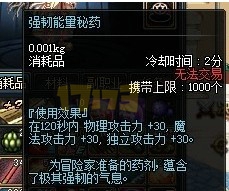 上图是楼主用200个圣诞节鞭炮开出来的,是新的buff药品看属性感觉还不错,不过只有20个。