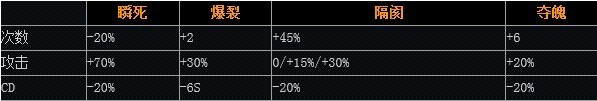 由此可见,单次输出的排行为:隔阂(触发效果)>隔阂(未触发效果)=夺魄>爆裂>瞬死