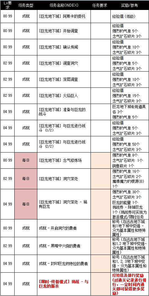 - 地下城中可获得“念气矿石碎片(暂定)”,该道具为巨龙地下城专用道具,可在NPC阿斯卡处兑换地下城所需消耗品和宝珠等道具。