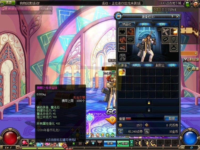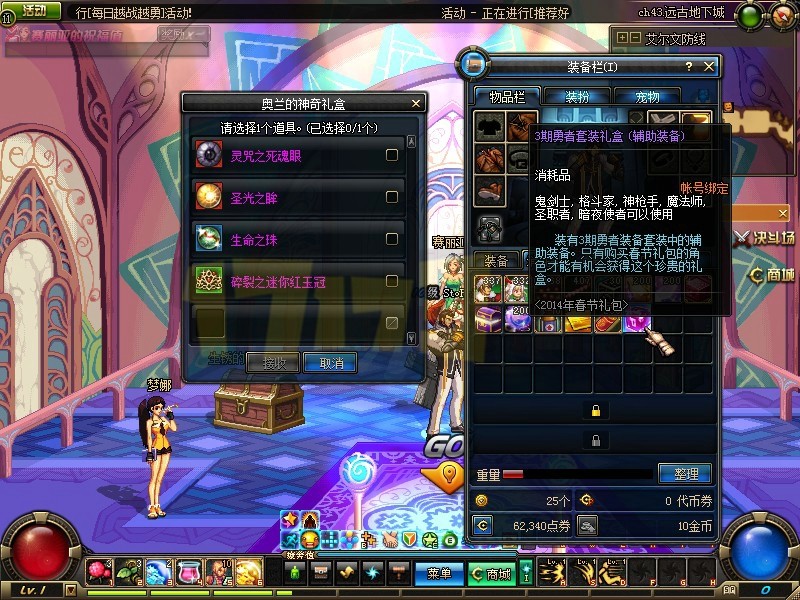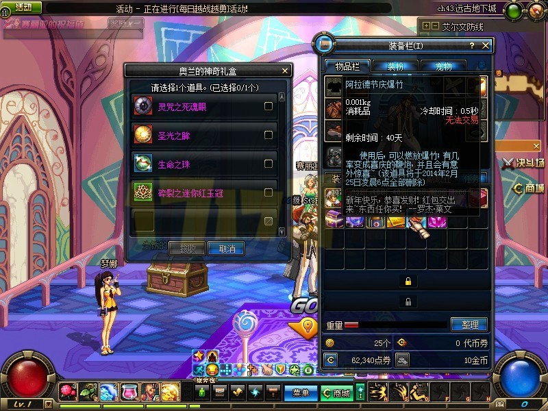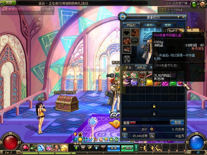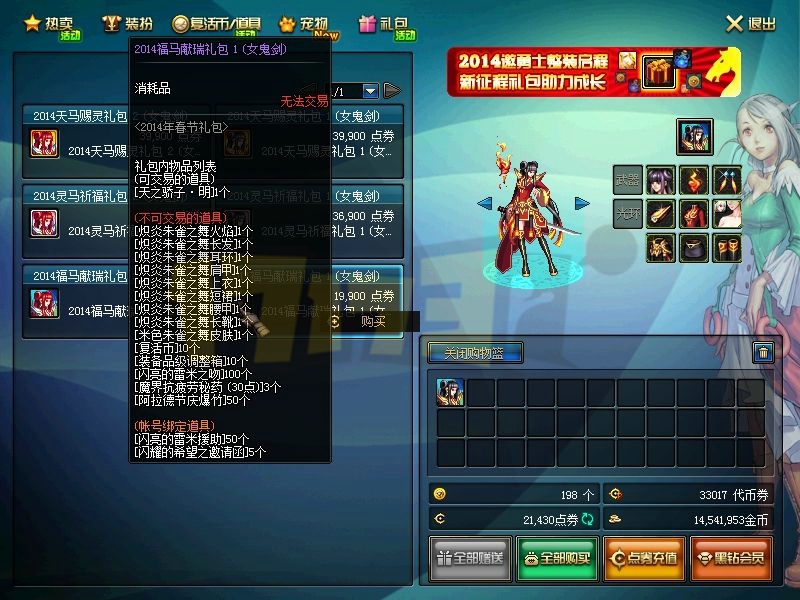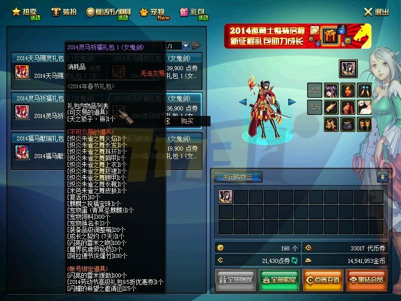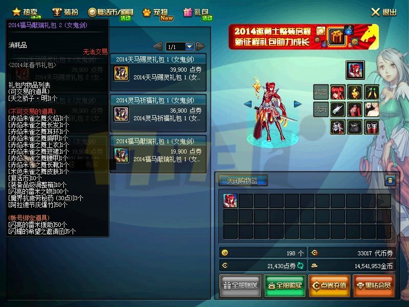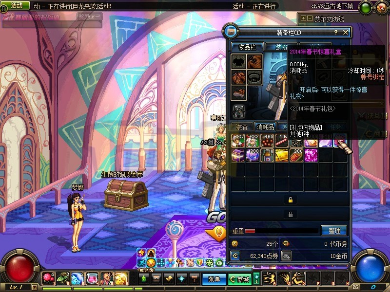 1月16日下午,DNF体验服更新了2014春节礼包,内容如下: