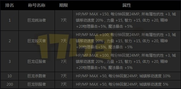 通关特殊计时地下城:极·巨龙盘踞之地,会根据通关速度排名发放荣誉称号。