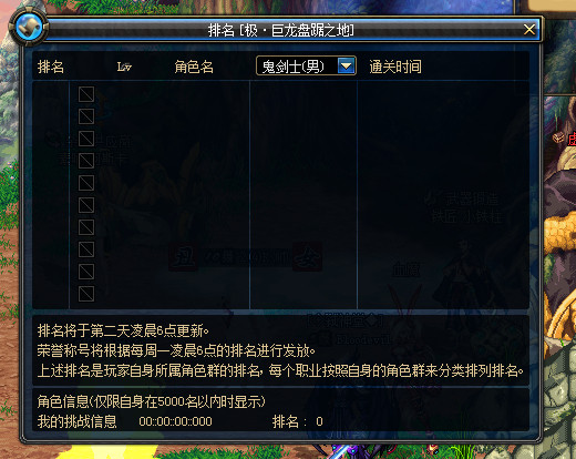1 进入到排名后,会在每周星期一凌晨6:00之后到下周星期一的凌晨6:00为止,登录游戏的时候可以获得奖励。